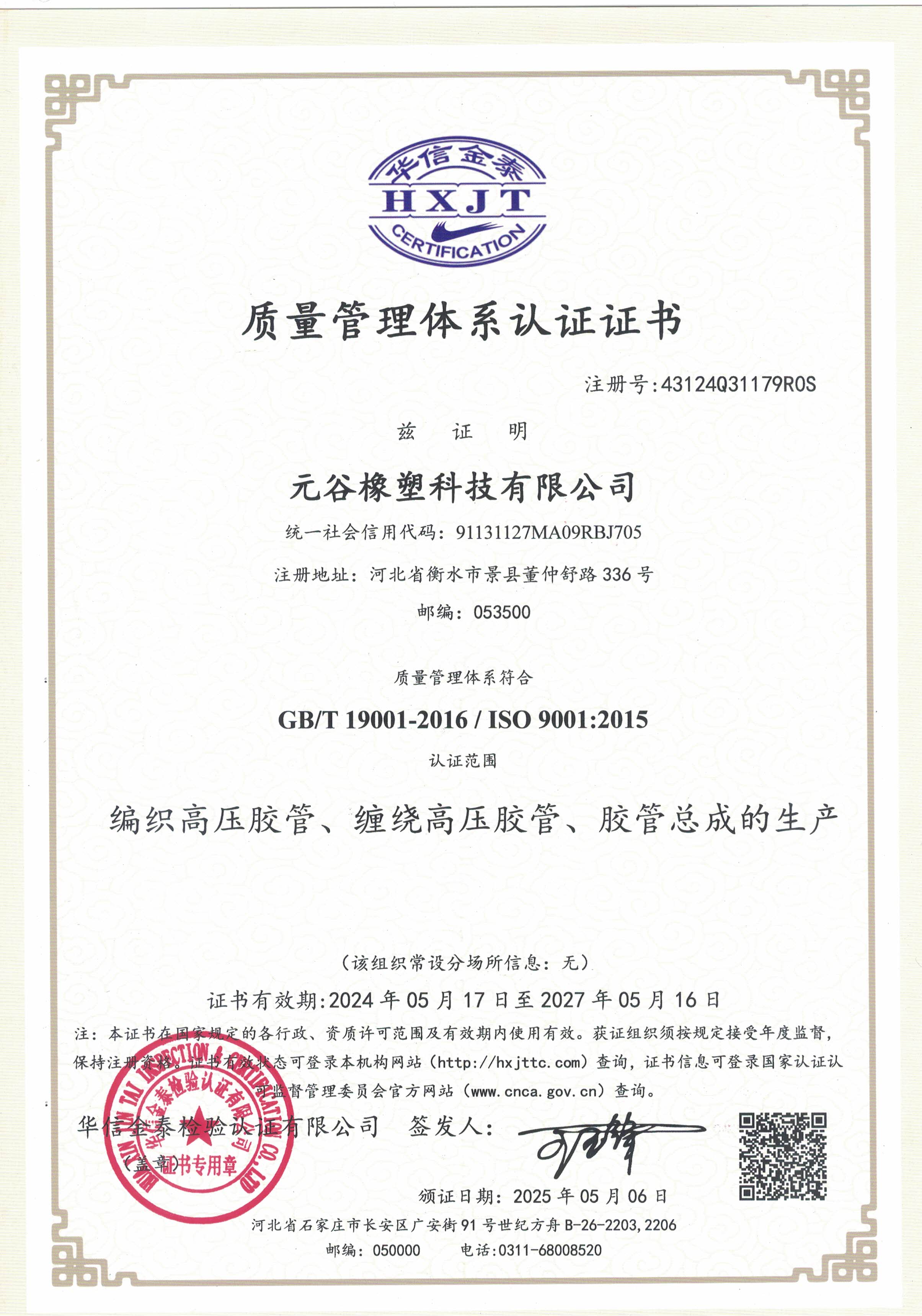 元谷橡塑科技有限公司位于河北省東南部的千年古城景州、東倚津福線、南靠石德鐵路、公路發(fā)達,交通極為便利。本廠專業(yè)精工 制造鋼絲編織、纏繞高壓、超高壓膠管、氣動管、噴砂管、吹氧管、鉆探管、酒機配件及不銹鋼金屬軟管、產(chǎn)品承受壓力高、彎曲半徑小、 搞疲勞性能強、使用壽命 長、廣泛用于冶金連鑄、石油鉆探、工程機械、礦山采掘及各類液壓機械。